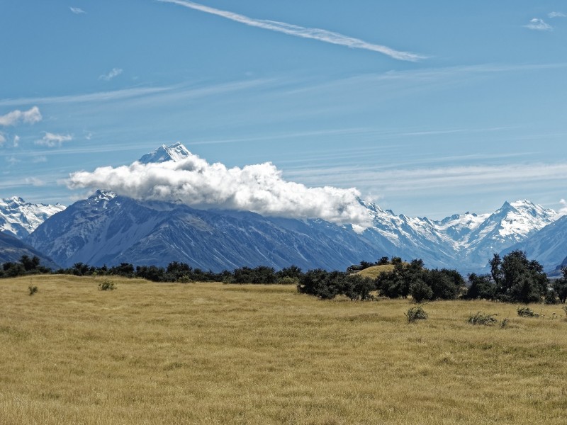 Ein lebendiges Dorf im Schatten eines der grössten Berge und Gletscher Neuseelands.