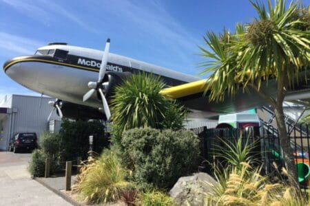 Trotz Muskelkater vom Vortag ging es auch schon wieder weiter. Zum Abschluss haben wir uns noch mit einem Milchshake vom Restaurant zur goldenen Möwe gestärkt. In Taupo gibt es das als „coolste“ ausgezeichnete “gelbe M“ weltweit, da man hier in einem alten Flugzeug sitzen kann! Den Tag ließen wir nach der kleinen Erkundungstour entspannt am Lake Taupo ausklingen um nochmal ein wenig an unserer Bräune zu arbeiten.