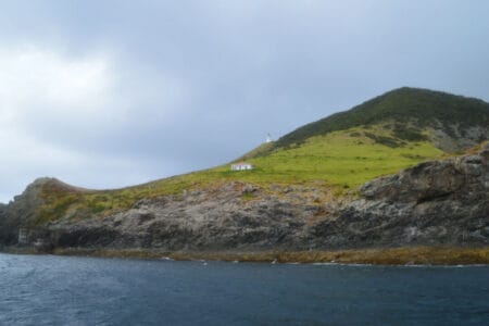 Nachdem wir der kleinen Delfin Familie vom Boot aus noch ein wenig zugeschaut hatten, setzten wir unsere Fahrt entlang der Inseln fort. Dabei wurden wir von der Crew immer wieder mit interessanten Infos zu der Umgebung versorgt. Die einzelnen Inseln sind teils in Privathand und wir erhielten sogar Infors zu den Bewohnern. Ein weiteres Highlight der Tour waren das Cape Brett Lighthouse und das bekannte „Hole in the Rock“, was unser Kapitän trotz hohen Wellengangs souverän ansteuerte. Unsere Mittagspause genossen wir anschließend auf der Urupukapuka Insel, die für einen ca. einstündigen Insel-Stopover diente. Von dessen Lookout hatten wir eine tolle Aussicht auf die umliegenden Inseln.