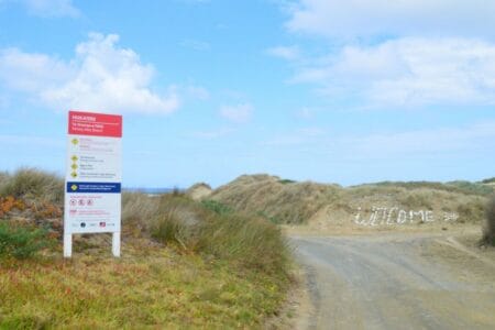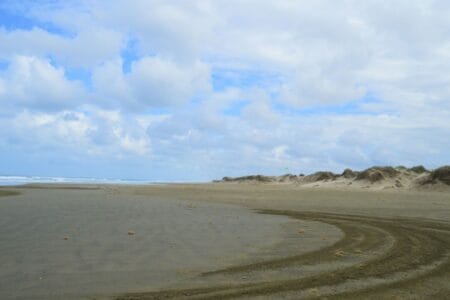 Der 90 Mile Beach erstreckt sich entlang der Westküste im äußersten Norden der Nordinsel. Eigentlich ist er gar nicht 90, sondern „nur“ 55 Meilen lang. Ähnlich wie wir es auf Fraser Island schon kennengelernt haben, ist auch der 90 Mile Beach als offizieller Highway anerkannt und kann somit bei Ebbe befahren werden. Auf den letzten Metern in unserem treuen Apollo Begleiter wollten wir aber kein Risiko eingehen und noch zwischen Sand, Meer und Dünen steckenbleiben. Daher sind wir lieber zu Fuß los, um die schier unendlichen Weiten des Strandes zu erkunden. Außer dem Meer vor und den Dünen hinter sich sieht man tatsächlich weit und breit nur Sand. Ok, manchmal noch ganz in der Ferne ein Auto, das sich den Weg durch die sandige Fahrspur bahnt. Ein irrer Anblick und der kurze sandige Spaziergang war auf jeden Fall genau das Richtige für uns, um uns ein wenig die Beine vor der etwas längeren bevorstehenden Fahrt zu vertreten.