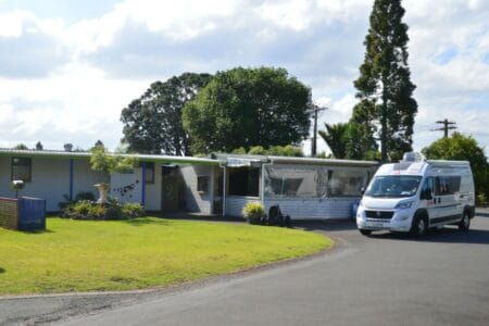 Anschließend ging es nämlich wieder über den bereits bekannten Highway 1 Richtung Süden mit Tagesziel Whangarei. Dort schlugen wir im sehr schönen, sauberen und gepflegten Top 10 Whangarei Holiday Park unser letztes Nachtlager in unserem treuen zu Hause auf vier Rädern auf. Das ca. 2 Stunden nördlich von Auckland gelegene Städtchen bot sich für uns als idealer Übernachtungsstopp an. Bereits die Fahrt dorthin dauerte schon gute 3 Stunden. Wir mögen unseren Apollo zwar wirklich, aber 3 Stunden sitzen reichen dann auch völlig aus. Gegen Nachmittag trudelten wir also auf dem familiengeführten Campingplatz ein und wurden sehr freundlich von Nick begrüßt. Er gab uns viele hilfreiche Infos zur Umgebung. Vom Platz starten praktischerweise mehrere schöne Rundwanderwege zu Höhlen inklusive Glühwürmchen. Auch die Whangarei Falls, die wir auf dem Hinweg bereits besucht hatten, kann man von da aus problemlos über eine schönen Wanderweg zu Fuß erreichen. Auch wenn wir wirklich gerne noch ein paar der vielen Tipps und Wege ausprobiert hätten, stand uns ein großer Camper-Putzen-Wasch-Nachmittag bevor (Marvins Lieblingsprogramm). Wenn man so viel unterwegs ist, kommen solche Sachen nämlich ein bisschen zu kurz. Außerdem galt es, das Schmuckstück am nächsten Tag auch in altem Glanz zurückzugeben. So nutzten wir also die gut ausgestattete Waschküche des Campingplatzes, um auch unseren Klamotten noch mal neuen Glanz zu verleihen, schrubbten den Apollo sauber und genossen anschließend noch einen freien entspannten Abend in unseren liebgewonnenen Campingstühlen.