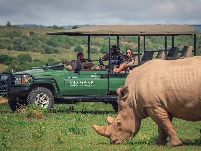 Verbringen Sie den ganzen Tag mit der Erkundung des Addo-Elephant-Nationalparks. Addo ist ideal für Selbstfahrer, bietet aber auch geführte Safaris, Reitausflüge und Wanderungen (alles optional). Besonders beeindruckend ist die Nähe zu den Tieren - Elefanten kreuzen oft direkt vor dem Auto den Weg, und mit etwas Glück lassen sich auch Löwen oder Hyänen beobachten. Doch Addo bietet weit mehr als nur Elefanten: Der Park ist einzigartig, weil er die sogenannten „Big Seven“ beherbergt - Elefant, Nashorn, Büffel, Löwe, Leopard sowie Weisser Hai und Südlicher Glattwal entlang der angrenzenden Küstenlinie. Die Landschaft ist vielfältig und reicht von dichtem Buschland über offene Savannen bis hin zu Küstendünen und Meeresabschnitten.